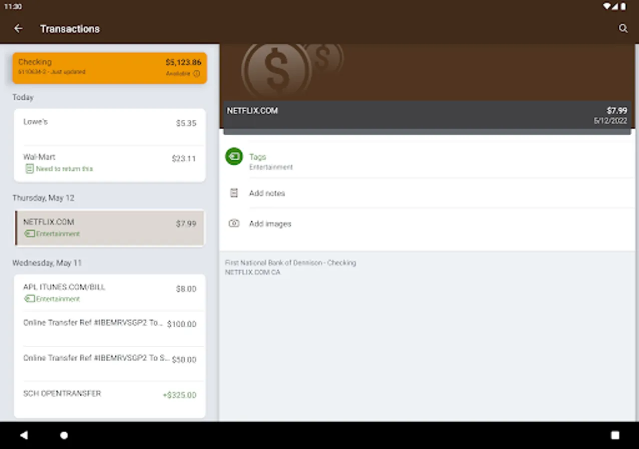 -Keep your transactions organized by allowing you to add tags, notes and photos of receipts and checks.