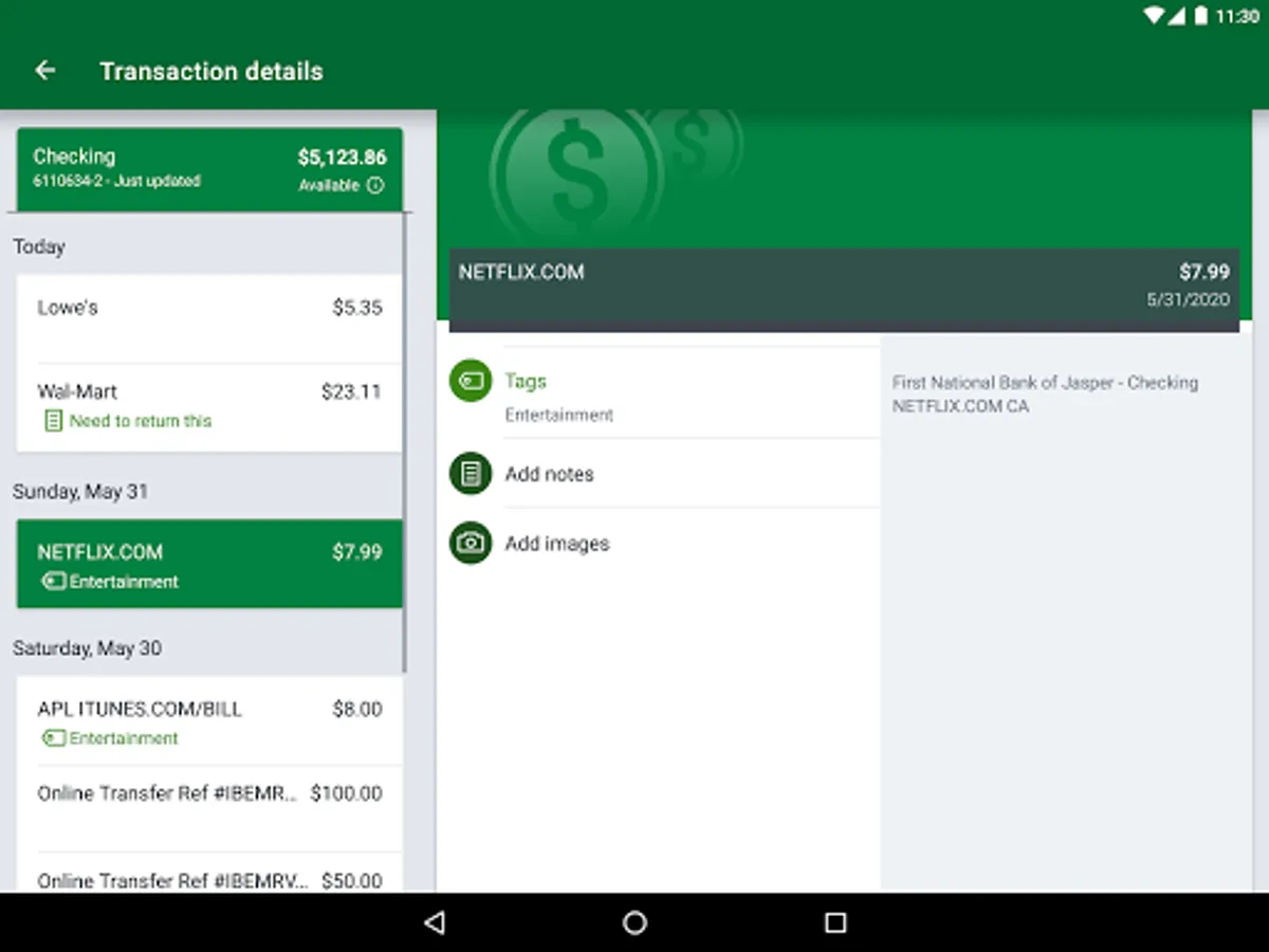 Keep your transactions organized by allowing you to add tags, notes and photos of receipts and checks.