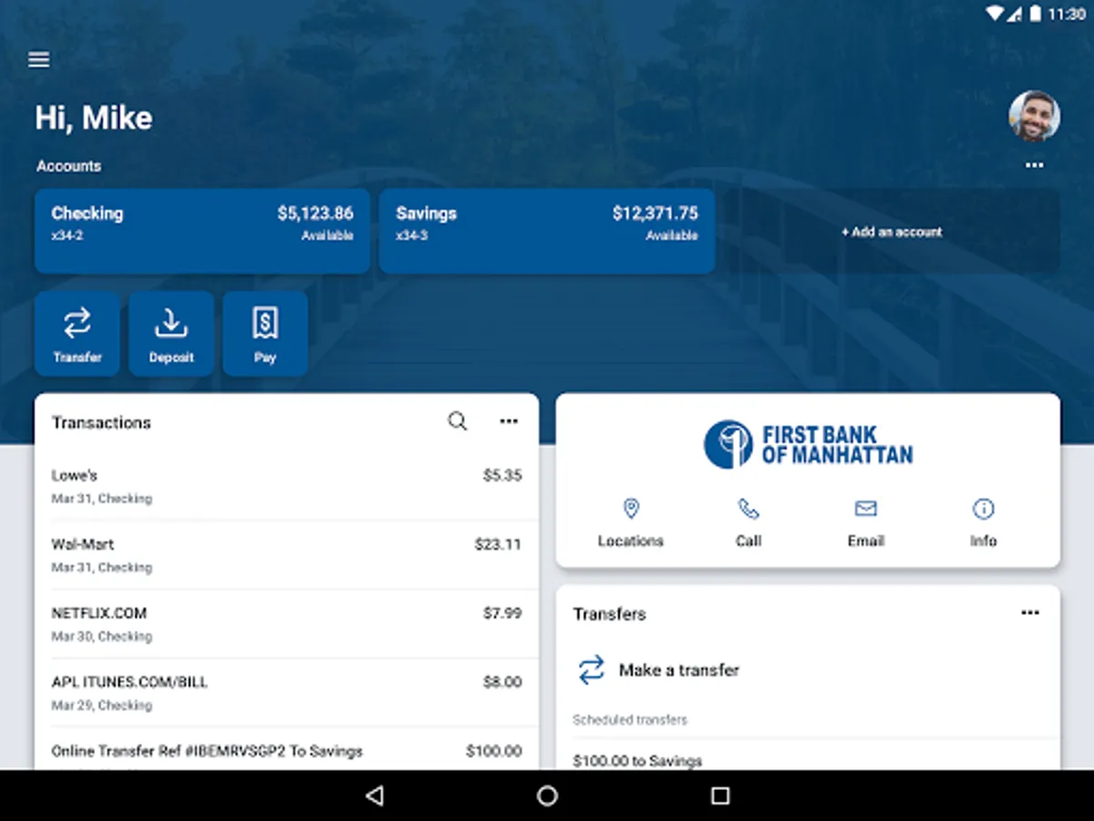 To use the 1st Bank of Manhattan app, you must be enrolled as a 1st Bank of Manhattan Internet Banking user. If you currently use our Internet Banking, simply download the app, launch it, and login with the same Internet Banking credentials.