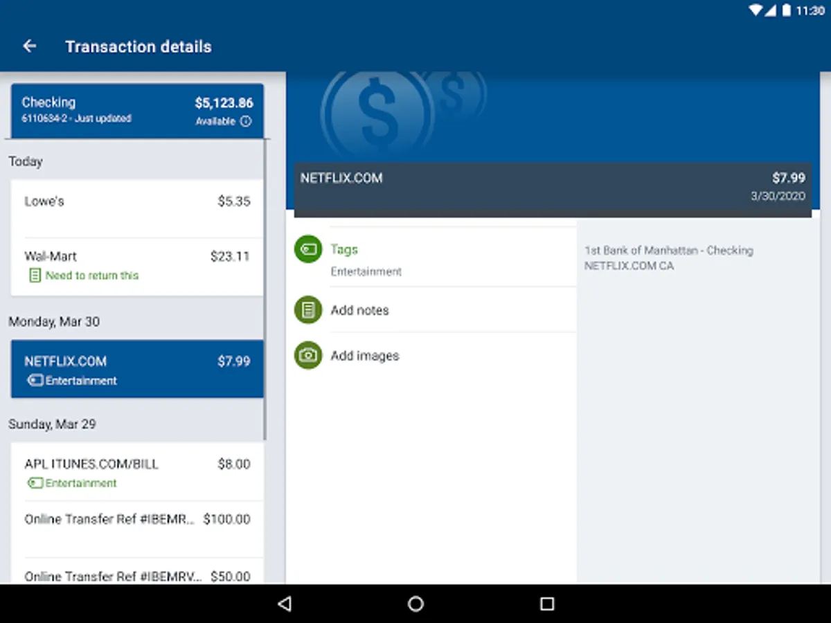 Keep your transactions organized by allowing you to add tags, notes and photos of receipts and checks.
