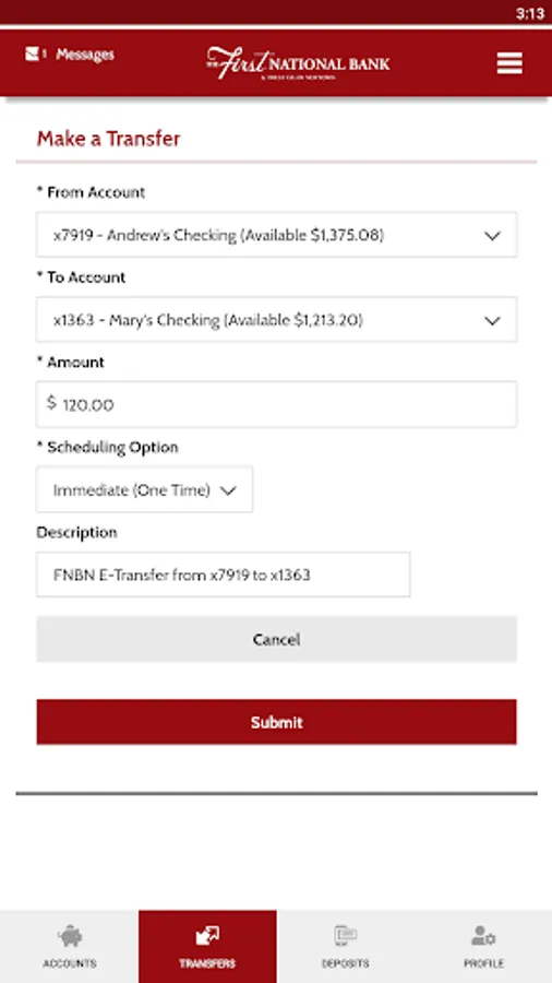 • View account balances and transaction history