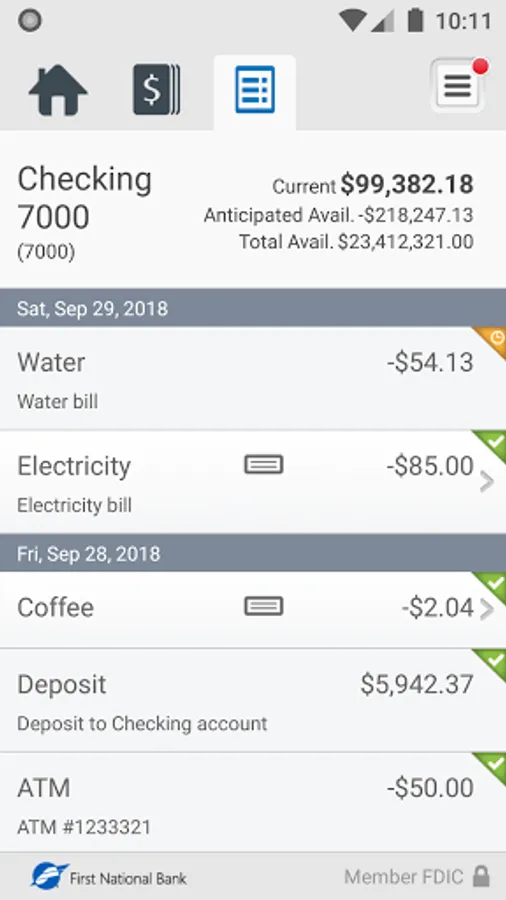 • View recent transactions, including check images