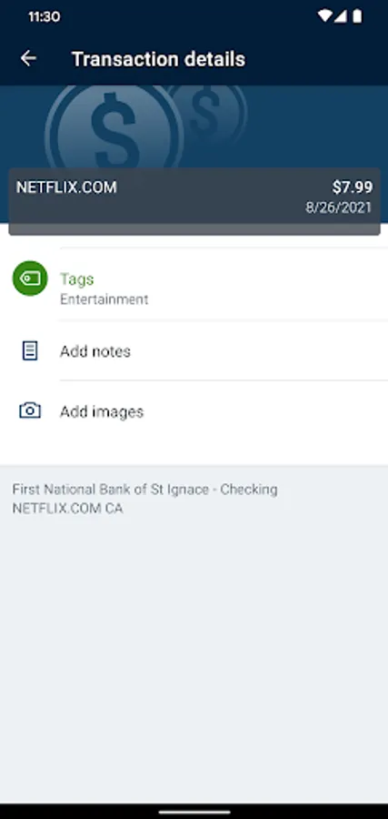 - Keep your transactions organized by allowing you to add tags, notes and photos of receipts and checks.