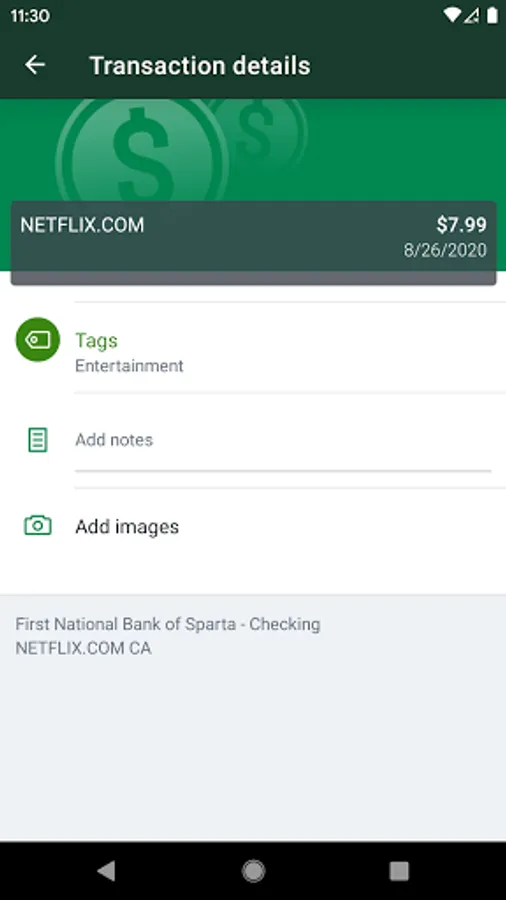 - Keep your transactions organized by allowing you to add tags, notes and photos of receipts and checks.