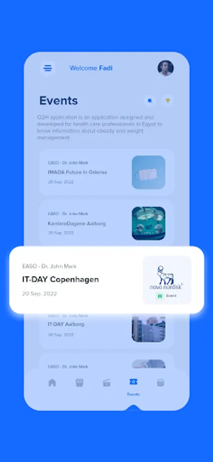O₂H application offers access to Novo Nordisk sponsored scientific events and meetings from different respectable entities like: