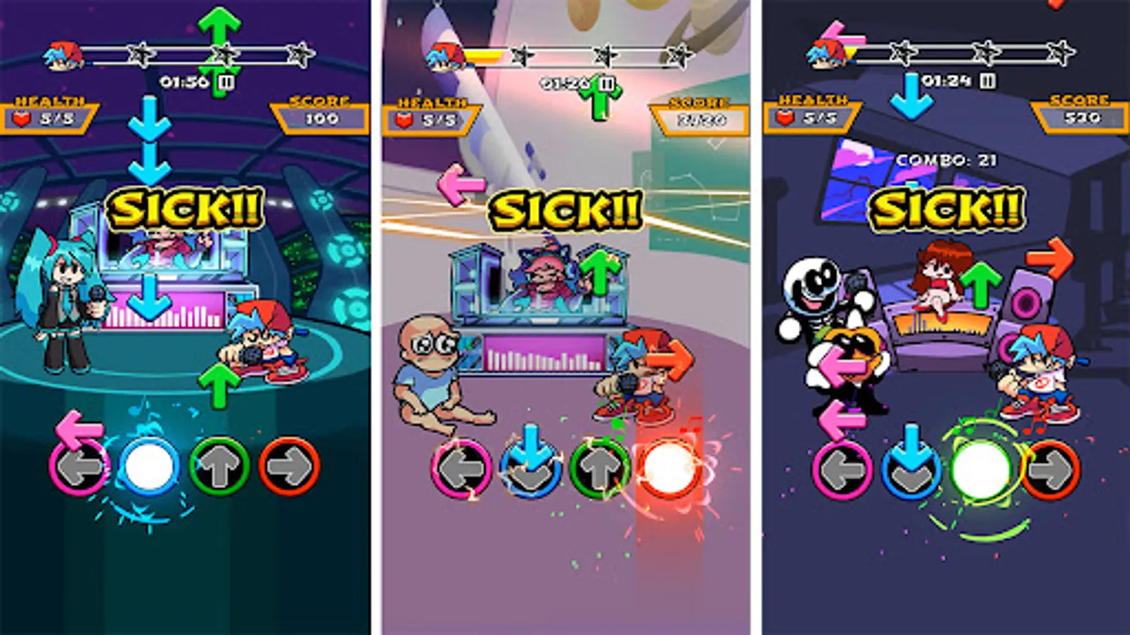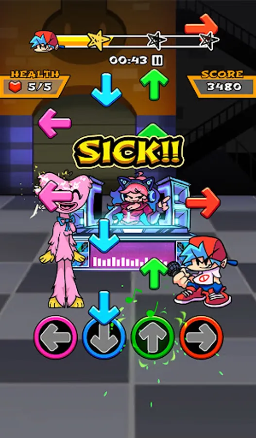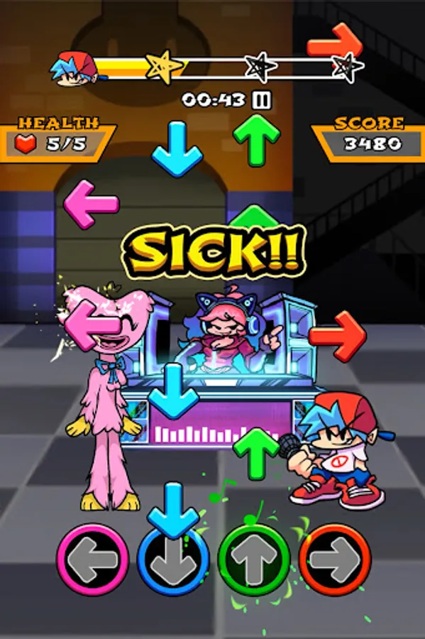 - Tap the music arrows when they reach the scoring area
