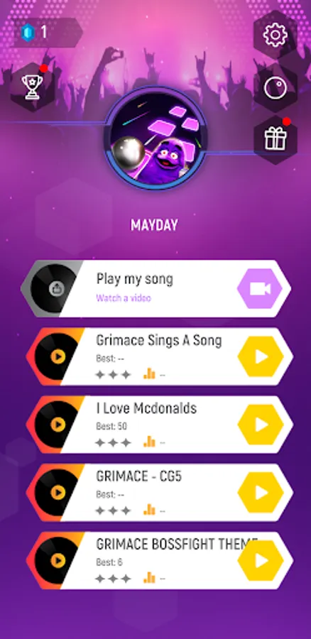 select your favorites Grimace Shake songs in menu and start play , get high score