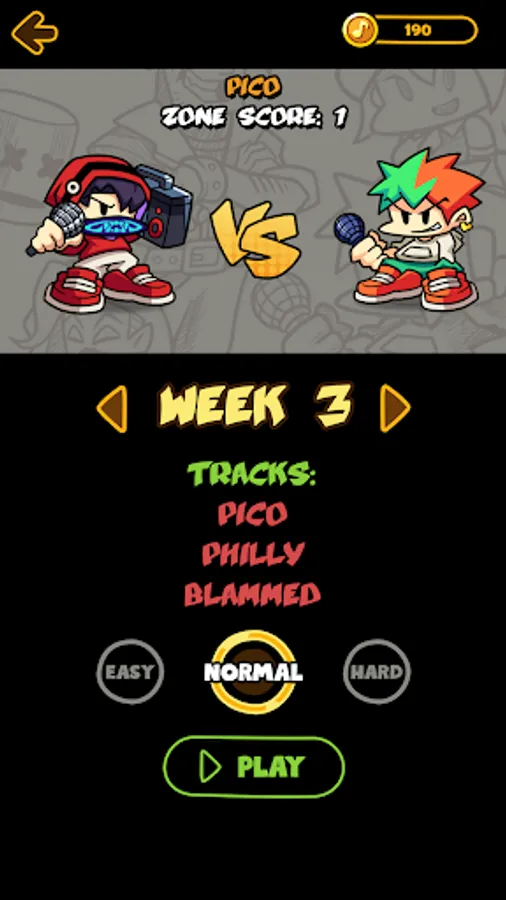 Music Challenge is a great music battle game where you play as FNF boy and take various rap battles with interesting opponents. A full game with 7 zones, 21 tracks and diverse rivals such as Racing boy, Senpai, Pico, Monster… Have fun! And enjoy the battles in Music Challenge.