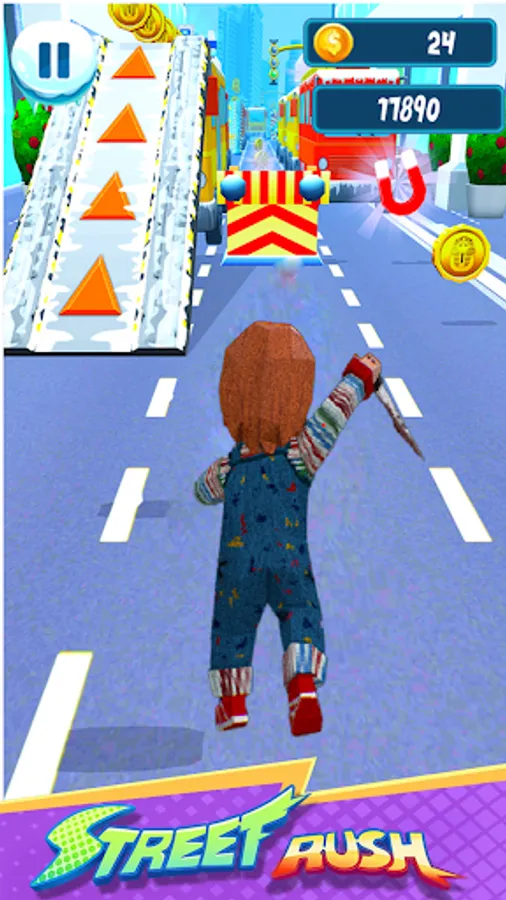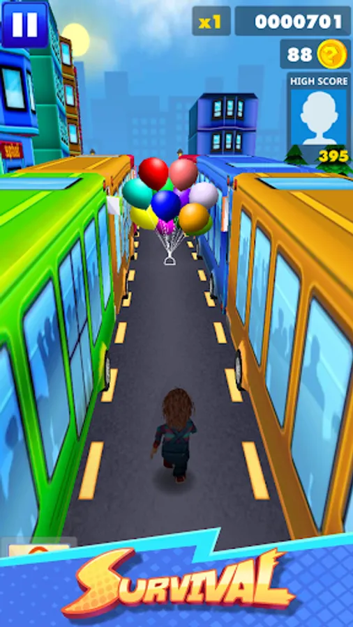 The chucky is waiting to live with her the most beautiful adventures subway run game and challenges to level up and she needs to collect various components of power and coins on the Subway road. You can control the game very easily and with one finger you can change the running path by swiping right to left or left to right and jump by swiping up or sliding when swiping down. You can also get a skateboard and double-tap to use it to protect you from collisions and don't avoid the surprise box and jump boots, also a jet-pack to help you get as many coins and gifts as possible