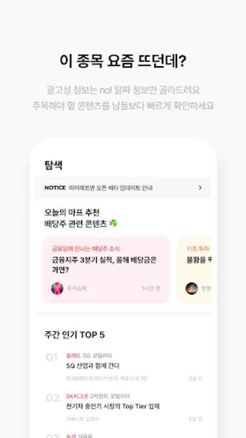 It is an app that organizes the necessary investment information according to the individual and saves time searching for information.