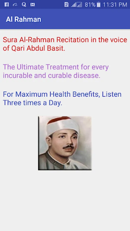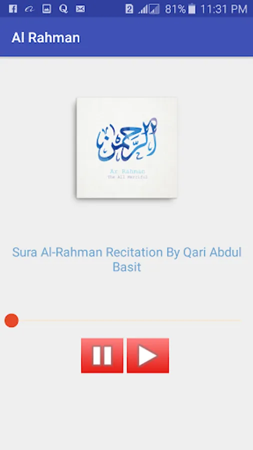 Audio recitation of Surah AR-Rahman in the voice of Qari Abdul Basit.