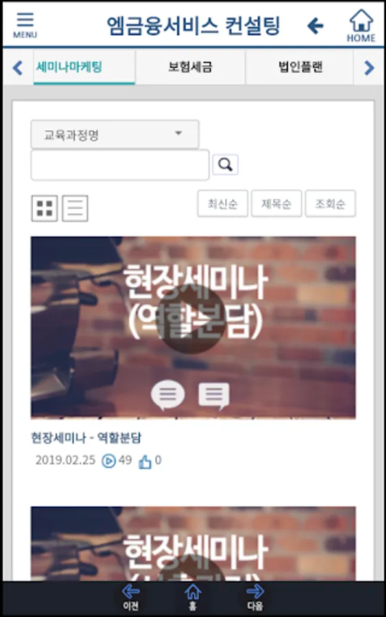 M Financial Services provides external and internal contents through web and mobile apps to employees and planners, along with video lectures on insurance products, sales training, and qualification training, as well as documents or image files. All content can be viewed for free