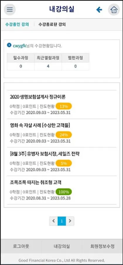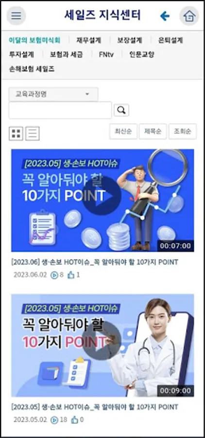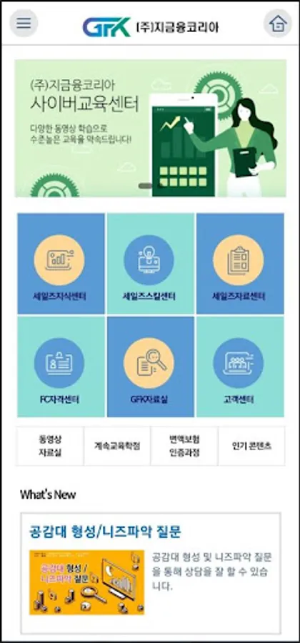 External and internal contents are provided through web and mobile apps for FCs and in-house employees belonging to G-Finance Korea, and service is provided through document or image files as well as video lectures on insurance products, sales training, and qualification training. . All content can be delivered to others through KakaoTalk sharing, and open content can be viewed for free.