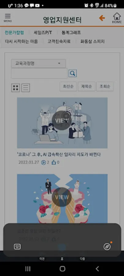 We provide external and internal contents through web and mobile apps to Hanwha Life Lab's employees and designers, and provide video lectures such as insurance products, sales training, and qualification training, as well as documents or image files. All content can be viewed for free