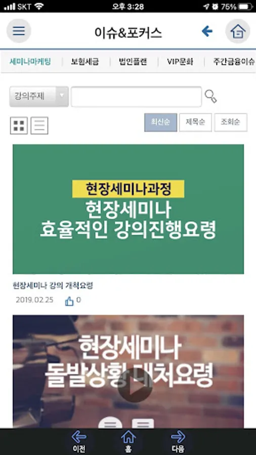 We provide external and internal content to FA and internal employees belonging to InfoU Financial Services through the web and mobile apps, and provide video lectures such as insurance products, sales training, qualification training, and document or image files. There is. All content can be delivered to others through KakaoTalk sharing, and open content can be viewed for free.