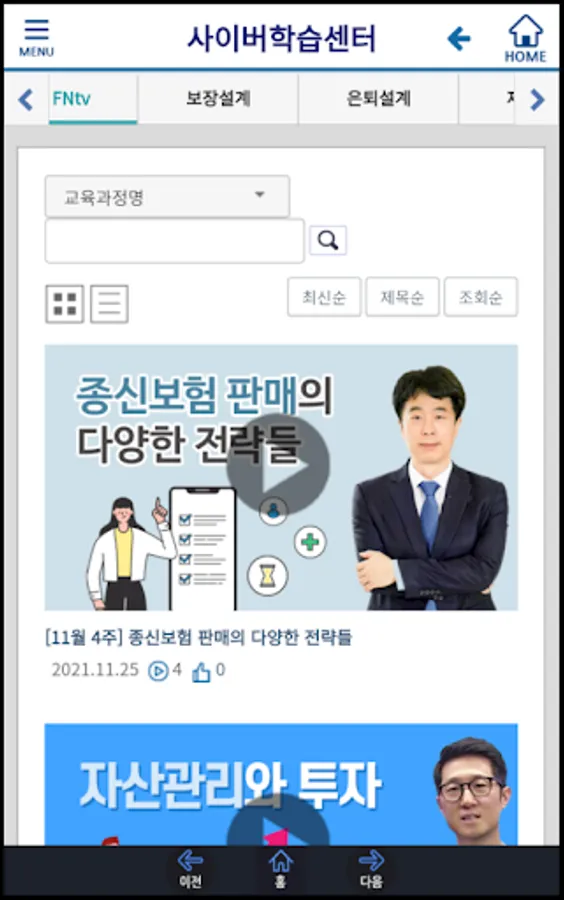 We provide external and internal contents through web and mobile apps to KDB Life executives and employees and planners, and provide video lectures such as insurance products, sales training, and qualification training, as well as documents or image files. All content can be viewed for free