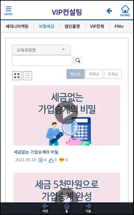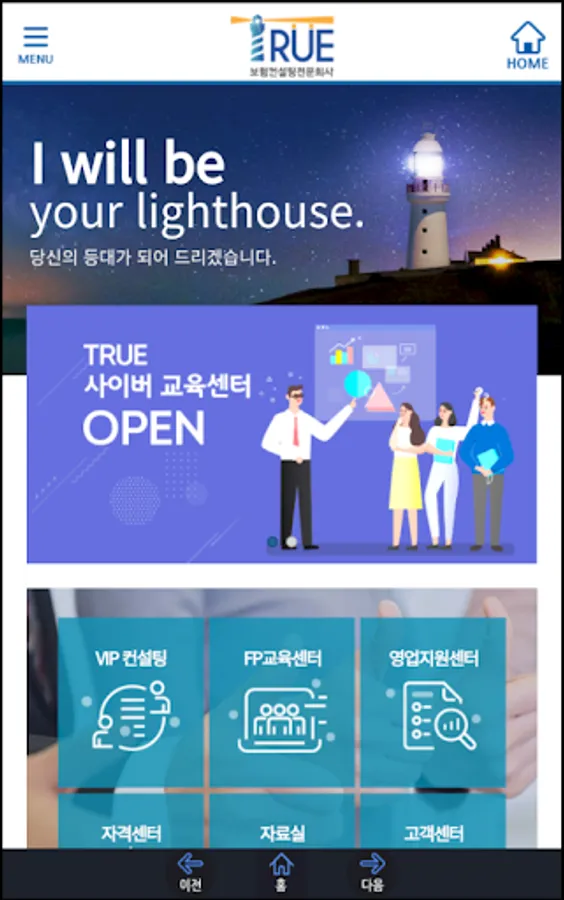 We provide external and internal contents through web and mobile apps to True employees and designers, and provide services through documents or image files along with video lectures on insurance products, sales training, and qualification training. All content can be viewed for free