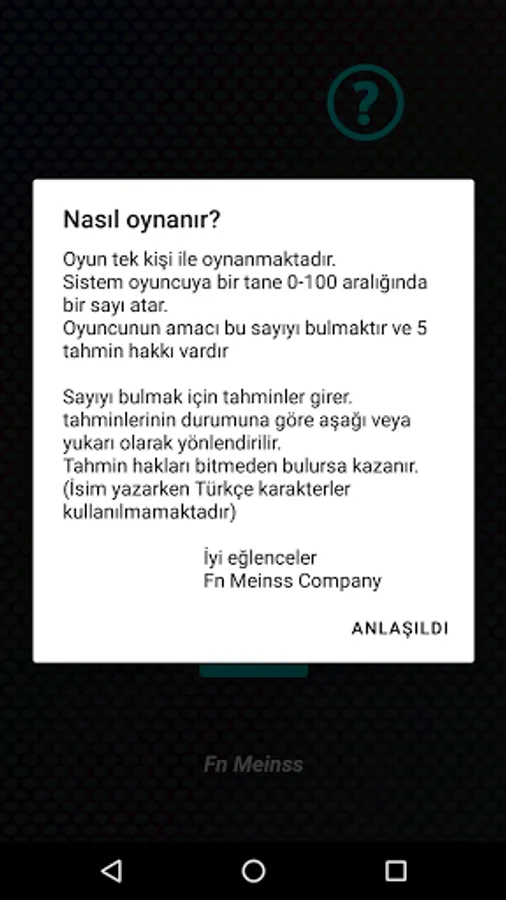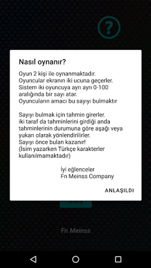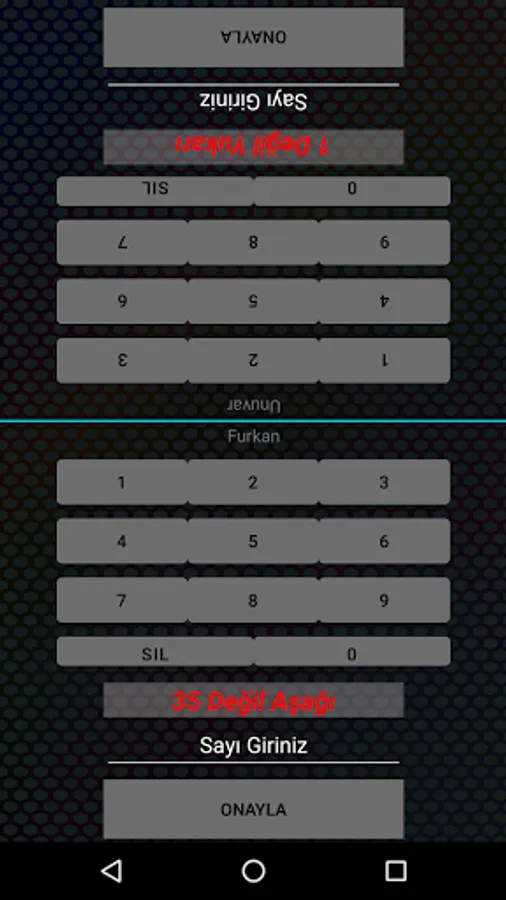 Our game is played with 2 people. Players play by looking from the top and bottom of the phone. The system will assign a number between 0-100 to both sides, players will try to find it according to the instructions.