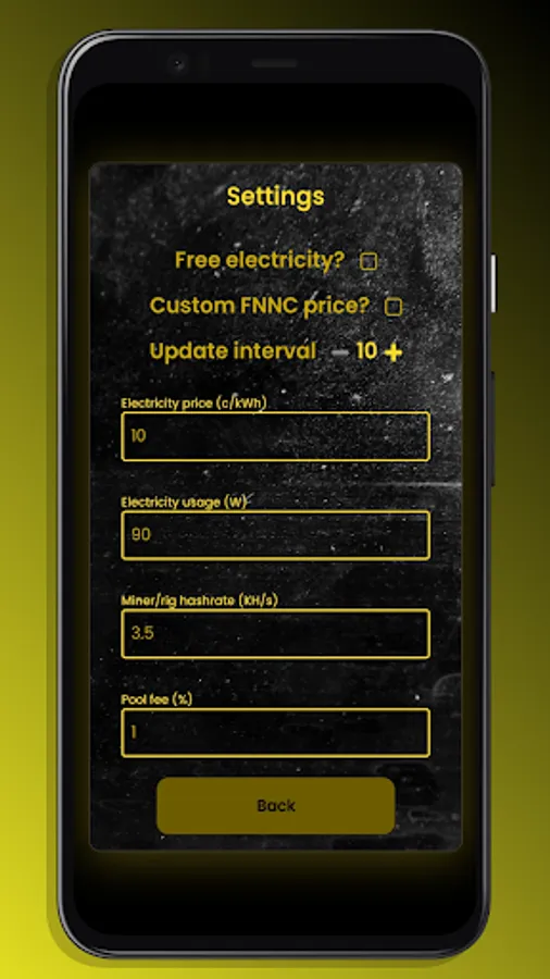 In calculator you can set electricity price, electricity usage, rig hashrate and pool fee.