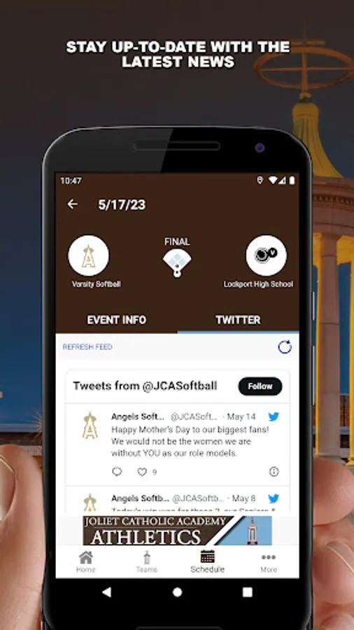 The Official JCA Athletics application is your home for Joliet Catholic Academy Athletics! Whether you’re on campus or on the go, this app is a must-have for ALL Hilltoppers/Angels fans.