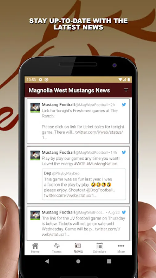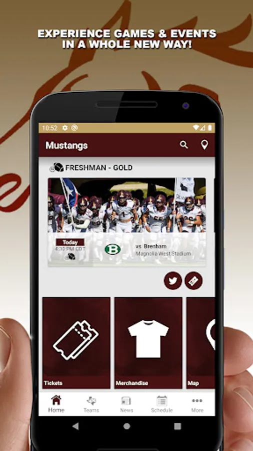 The Magnolia West Mustangs application is your home for Magnolia West Football! Whether you’re on campus or on the go, this app is a must-have for ALL Mustang fans. With schedules, social media streams, and video streaming surrounding the game, the Magnolia West Mustangs application covers it all!