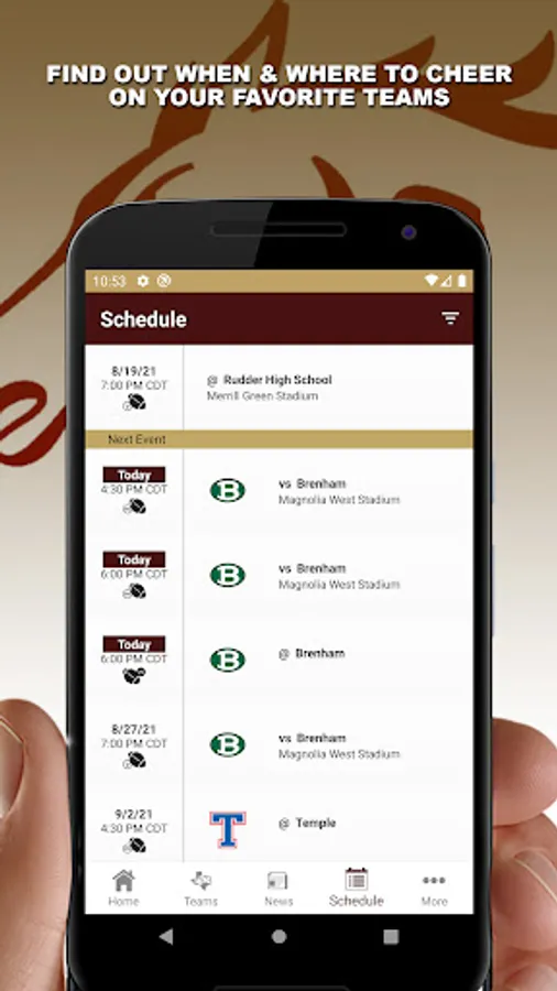 + GET DIRECTIONS – Easily find directions to every game throughout the season