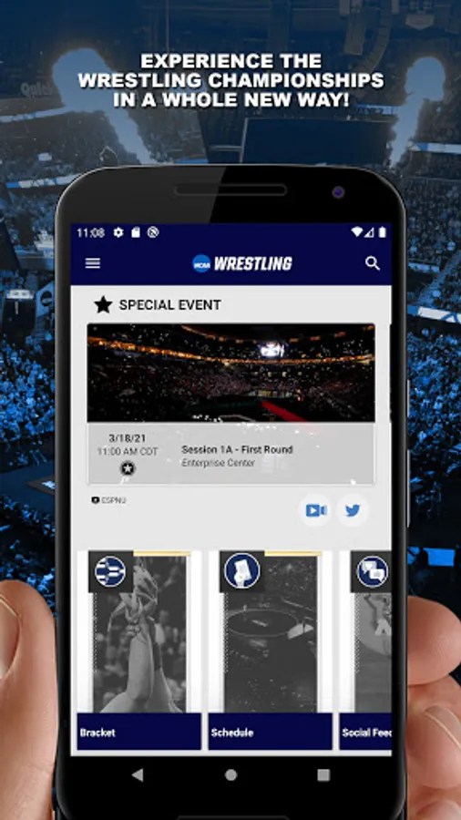 The NCAA DI Wrestling Championship application is your home for this year’s championship event! Whether you’re on site or following along from home, this app is a must-have for ALL NCAA Wrestling fans. With event schedules, social media streams, and all the results & recaps surrounding the championships, the NCAA DI Wrestling Championship app covers it all!