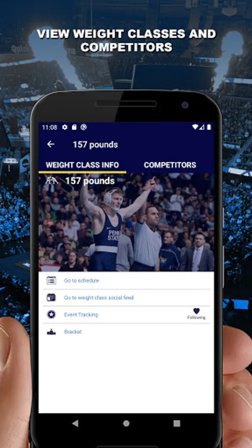 + NOTIFICATIONS – Custom alert notifications to let fans know everything surrounding Gameday. Customize your alerts to only get info on the weight classes you want to follow!