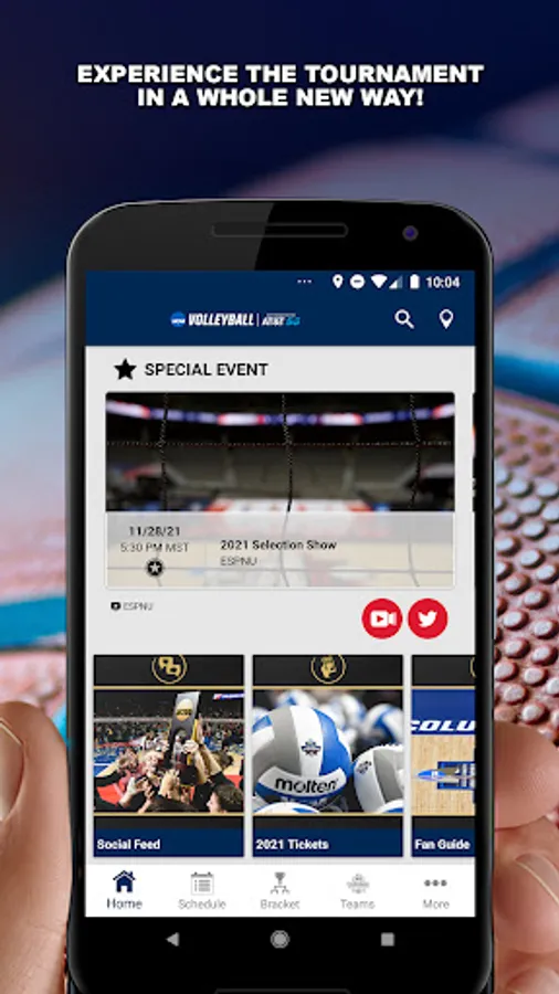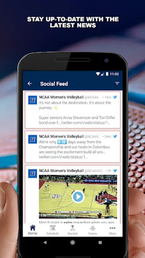 The NCAA Volleyball Championship application is your home for this year’s tournament and championship event! Whether you’re on site or following along from home, this app is a must-have for ALL Division I Volleyball fans. With event schedules, social media streams, brackets, and all the scores and stats surrounding the games, the NCAA Volleyball Championship application covers it all!