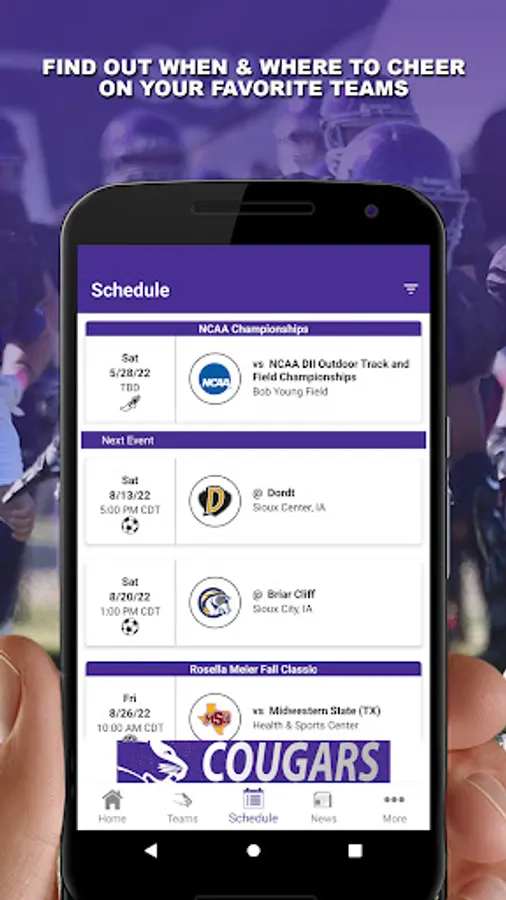 The Official USF Cougars application is your home for University of Sioux Falls Athletics! Whether you’re on campus or on the go, this app is a must-have for ALL Cougars fans.