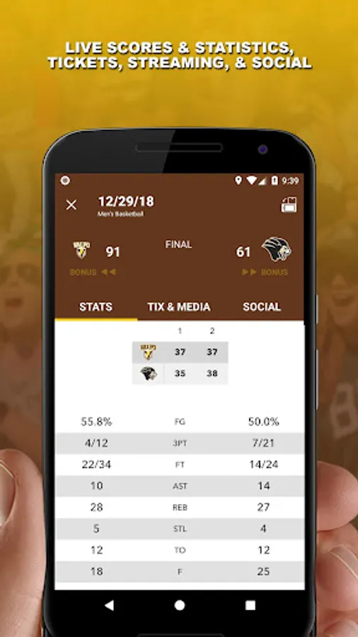 + SCORES & STATS – All the live scores and stats that fans need and expect during live games