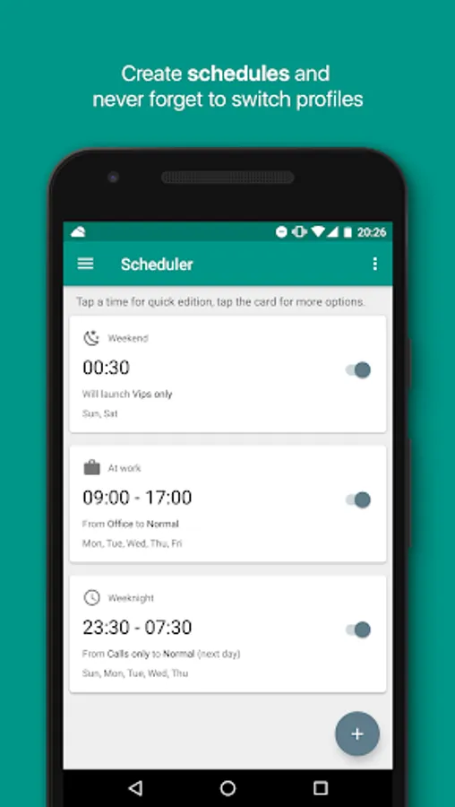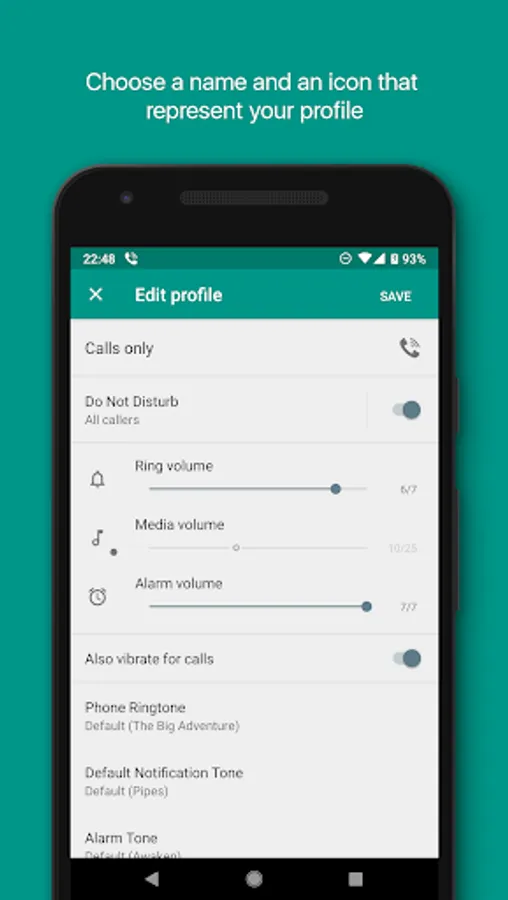 Add audio profiles / sound profile (volume, vibration and ringtones). Full control of your Do Not Disturb settings and Priority Notifications!