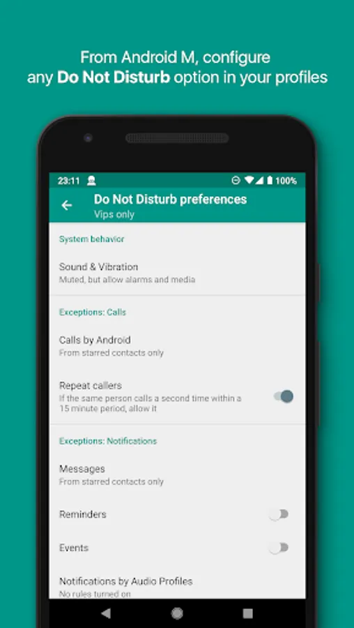• Manage your Do Not Disturb preferences for each profile (from Android M)