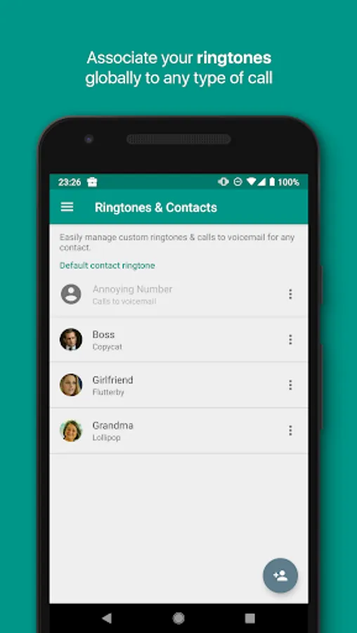 • Control all your contact ringtones (or calls to voicemail) within only 1 screen