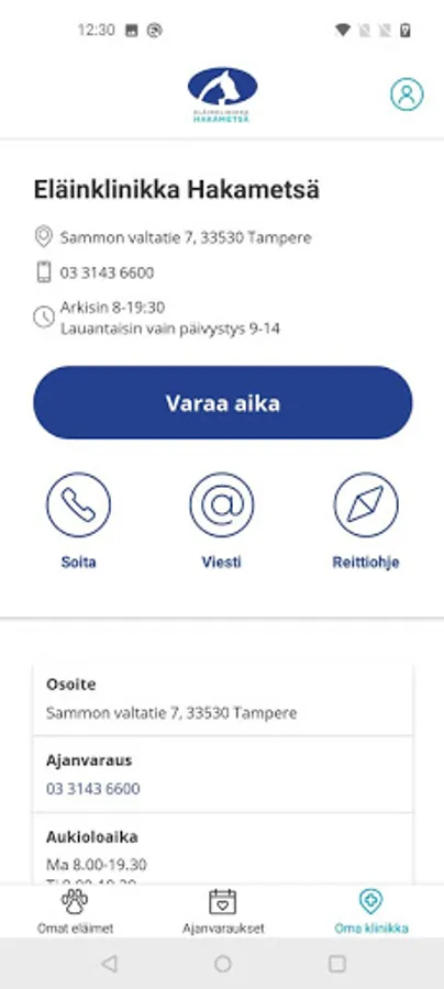 The Animal Clinic Hakametsä offers its customers the opportunity to view their own pet care information and easily make appointments for the Hakametsä Clinic. For example, you can easily check the timeliness of vaccinations, follow-up instructions, and laboratory results. With the app, you can also save your own animal care notes as well as save a picture of your pet on the animal’s health card. Logging in is done with the phone number you provided in our patient database, to which a password to log in to the application will be sent as a text message.