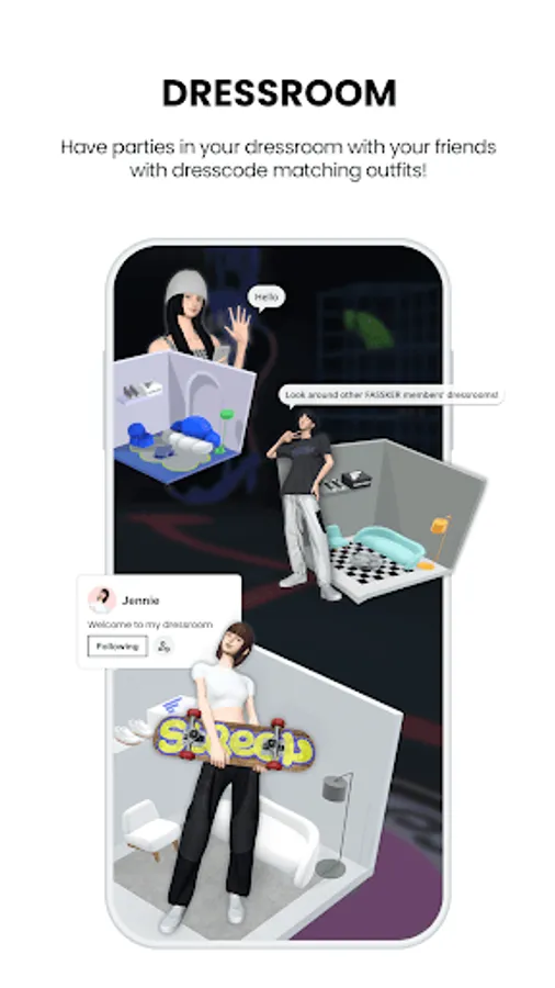 Display limited edition digital fashion in your dress room and have your frineds at your place.