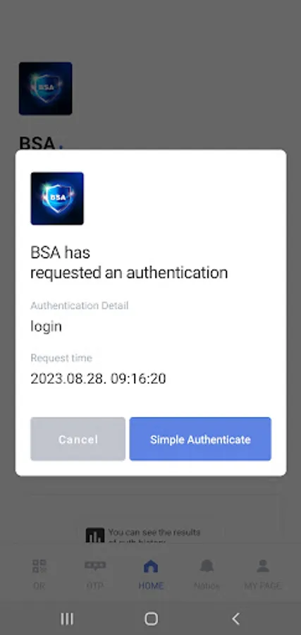 BSA Auth is a simple personal security authentication mobile app.