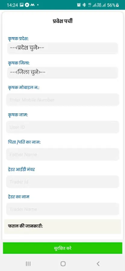 Fruits and Vegetable App facilitates the capturing of Arrival of Crops at the gate entry. The following details are captured at gate of APMC.