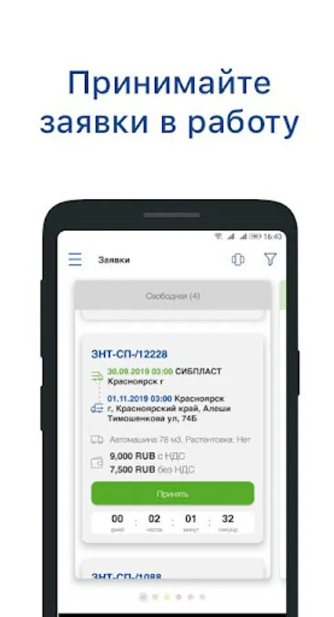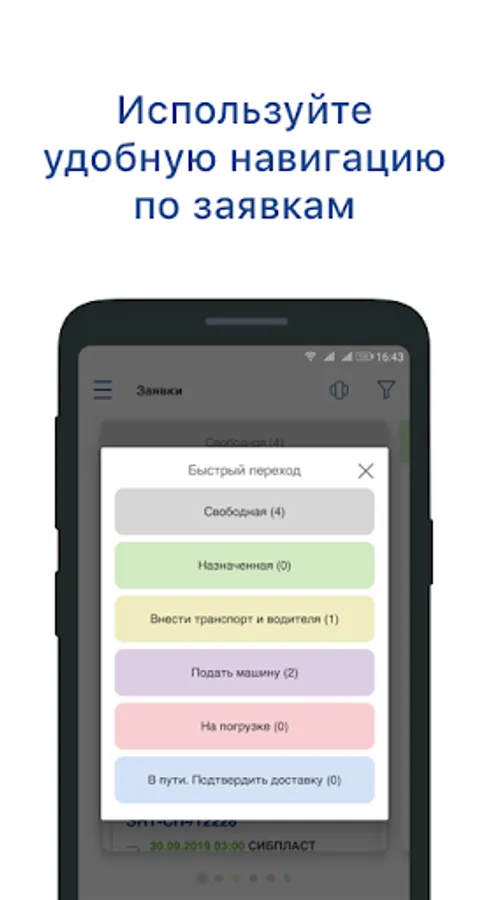 The application systematizes and simplifies the work of carriers due to the availability of a convenient system for distributing requests for transportation in accordance with the type of transport, as well as the loading date.