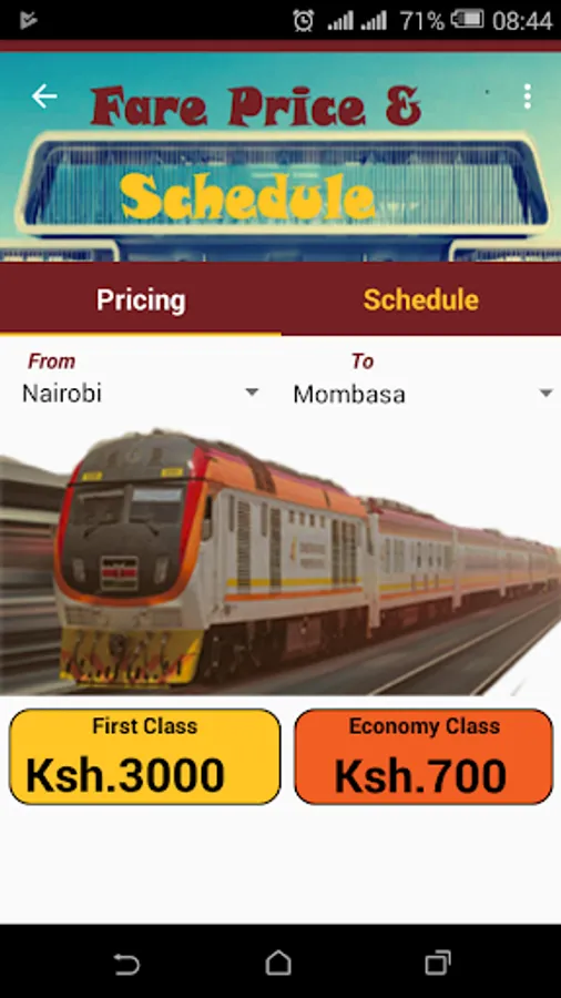 1. Book seats and check ticket status. This app facilitates Graphical User Interface (GUI) for the official Kenya Railway's *639# USSD platform. Booking via Web is also facilitated courtesy of metickets.krc.co.ke.