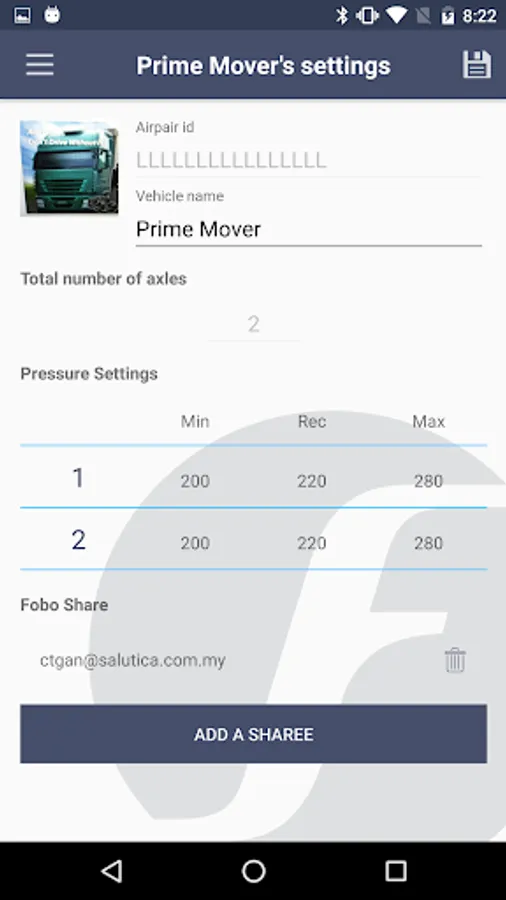 The main function of FOBO Ultra is to monitor air pressure and temperature of tires of heavy vehicles. It then transmits the readings to a smart phone, an Android smart device and its In-Car unit where the user can browse. The user can set upper and lower thresholds of the air pressure. FOBO Ultra will monitor the pressure based on the thresholds with its smart algorithm and will provide three levels of alerts when the thresholds are breached.