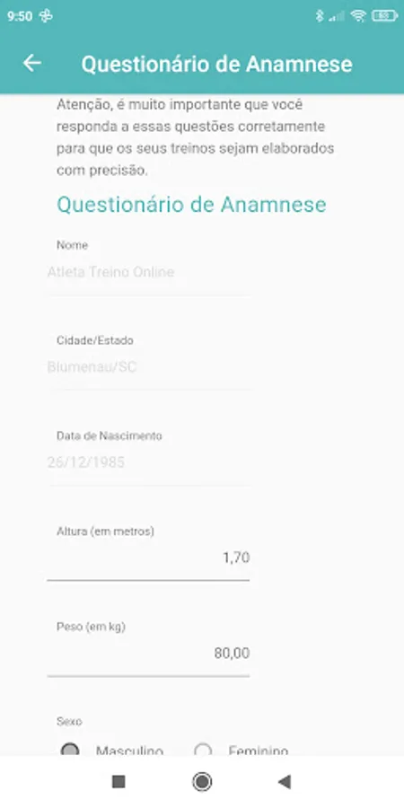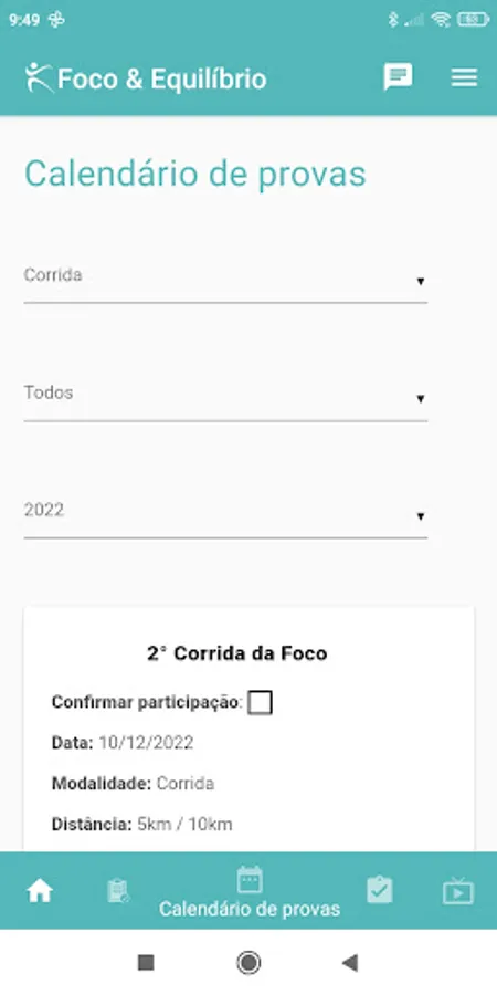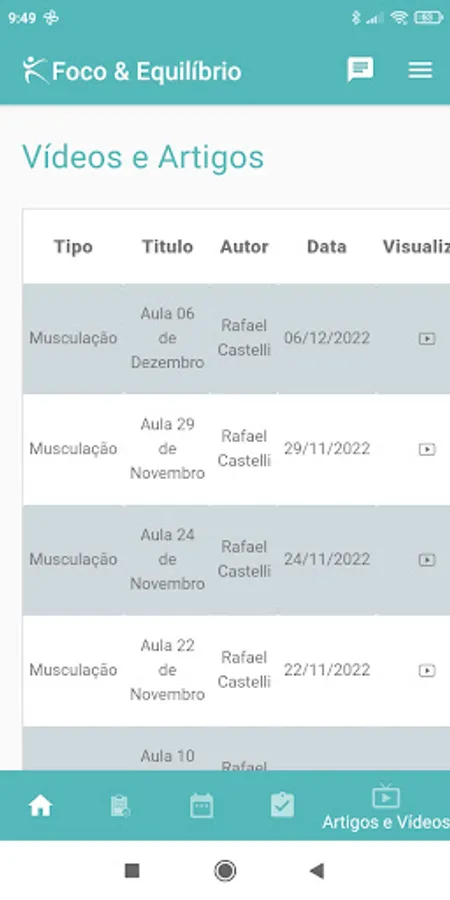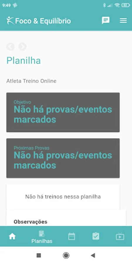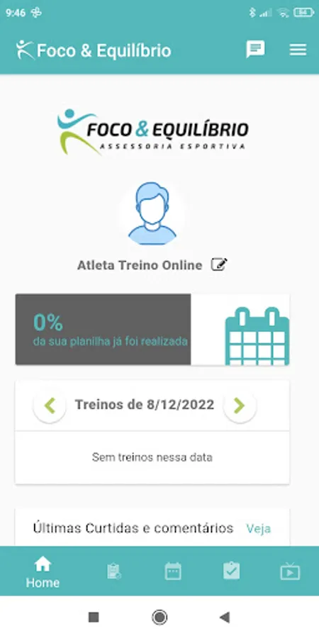 Application for the athletes of Assessoria Esportiva Foco & Equilíbrio that has the following functionalities: