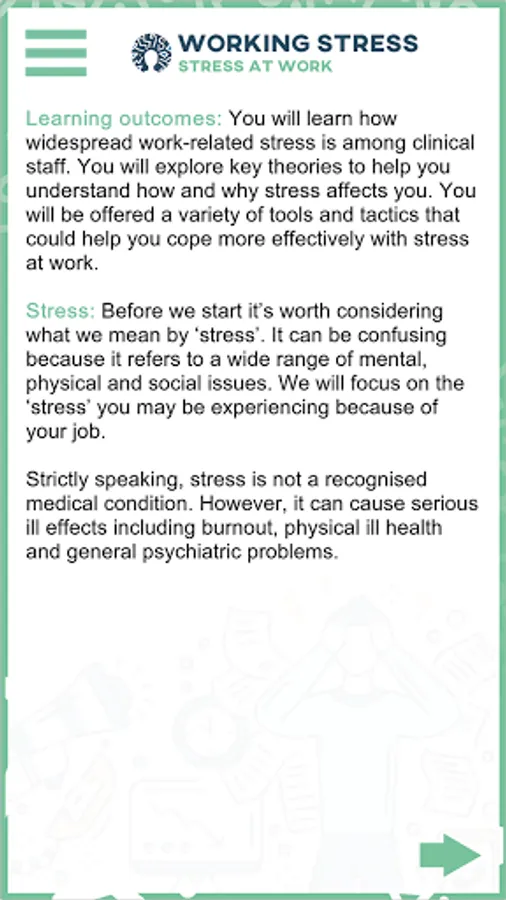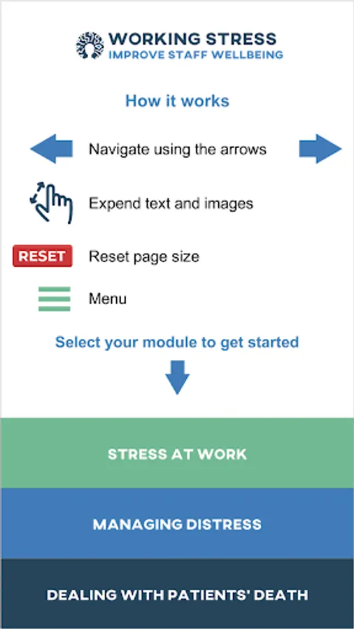 Working StressTM App helps clinical staff understand the unique nature of stress in clinical practice and offers strategies for individuals to develop a self-management approach that works best for them.