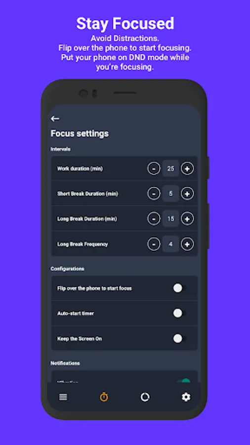 ➕ Stay Focused App can put automatically your phone on Do Not Disturb Mode when the timer starts counting.