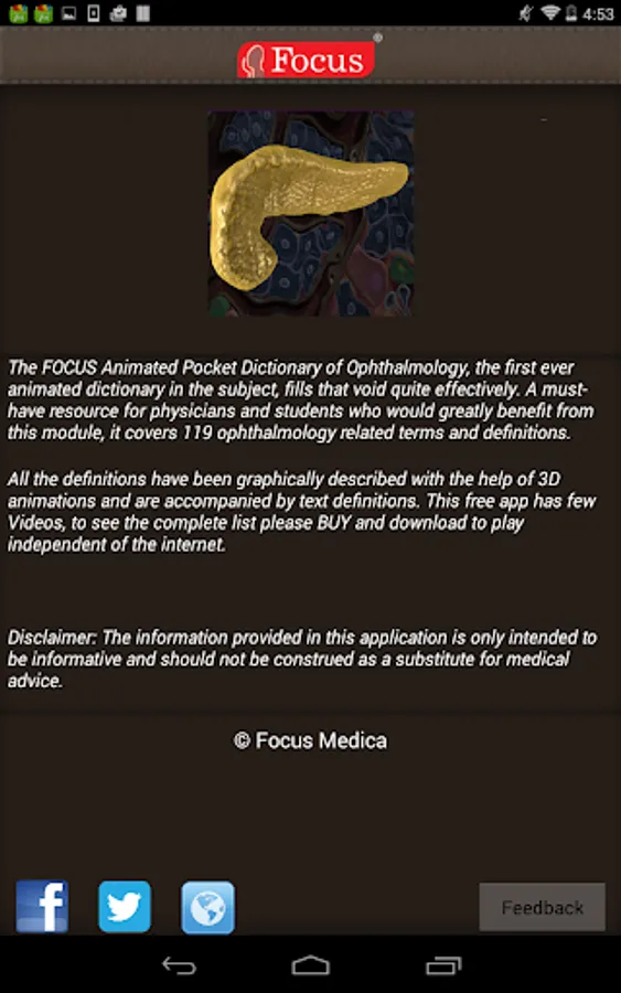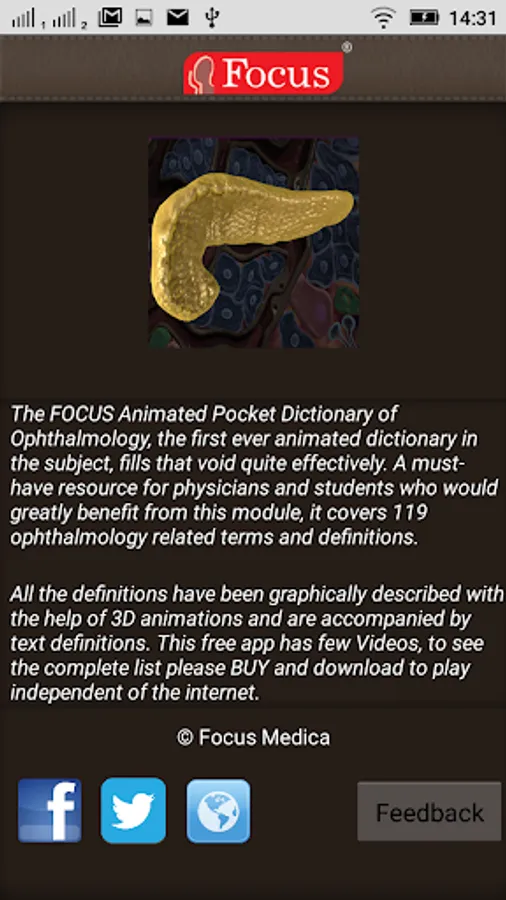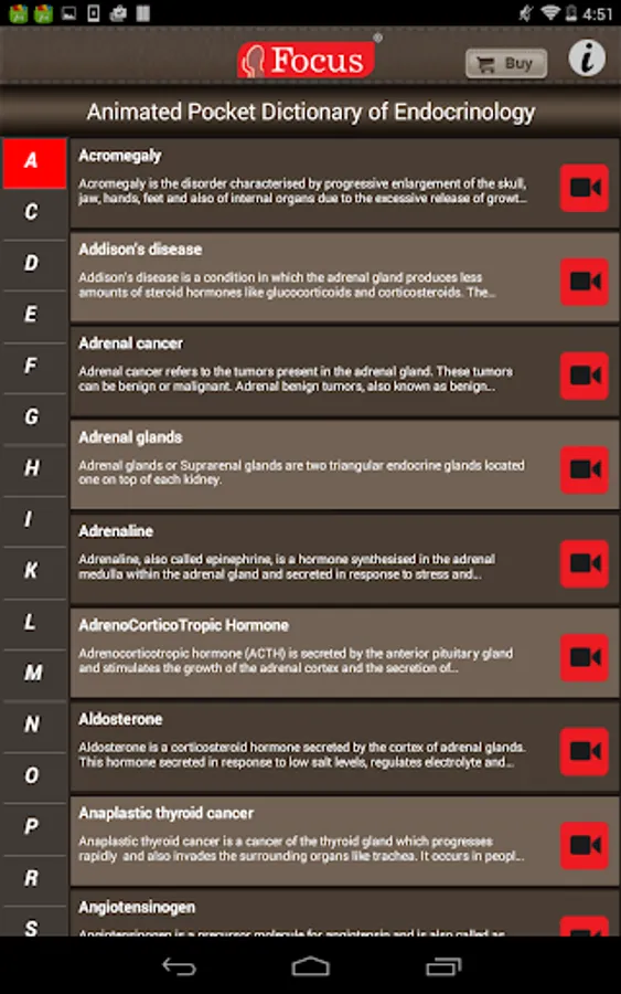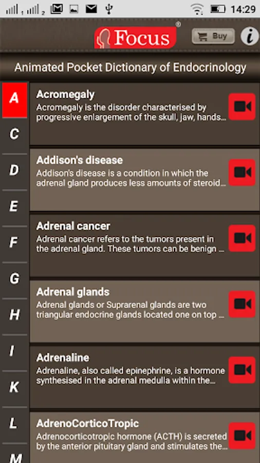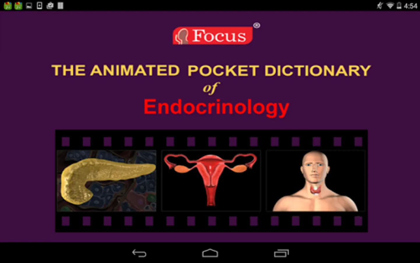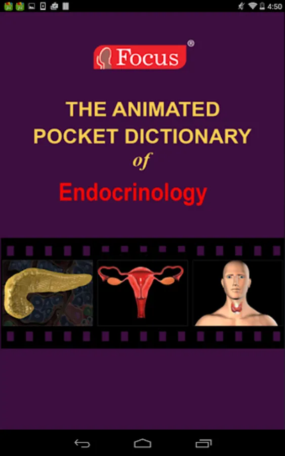 The FOCUS Animated Pocket Dictionary of Endocrinology, the first ever animated dictionary in the subject, is a comprehensive reference source for the definition of terms related to the endocrine system and its disorders. A must-have resource for physicians and students who would greatly benefit from this module, it covers 97 related terms and definitions.