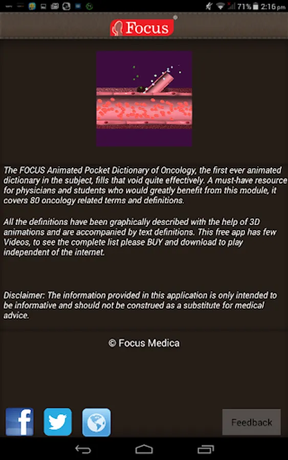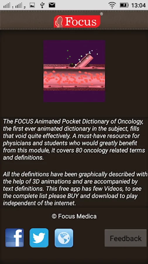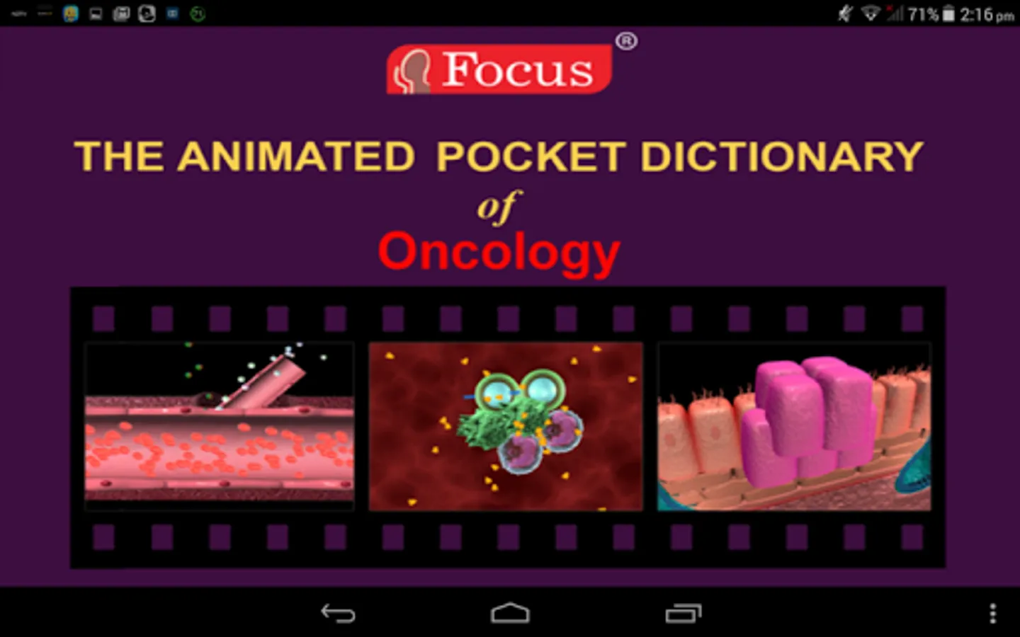 The FOCUS Animated Pocket Dictionary of Oncology, the first ever animated dictionary in the subject, fills that void quite effectively. A must-have resource for physicians and students who would greatly benefit from this module, it covers 80 oncology related terms and definitions.