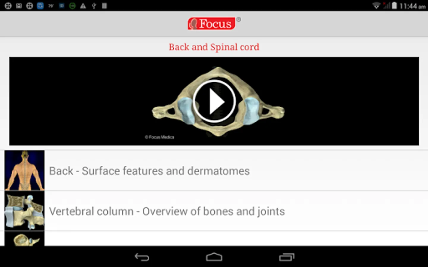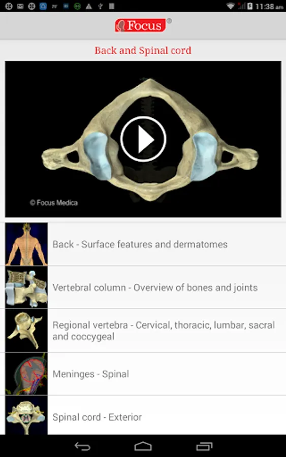 The Focus Digital Anatomy Atlas on Back and Spinal Cord
