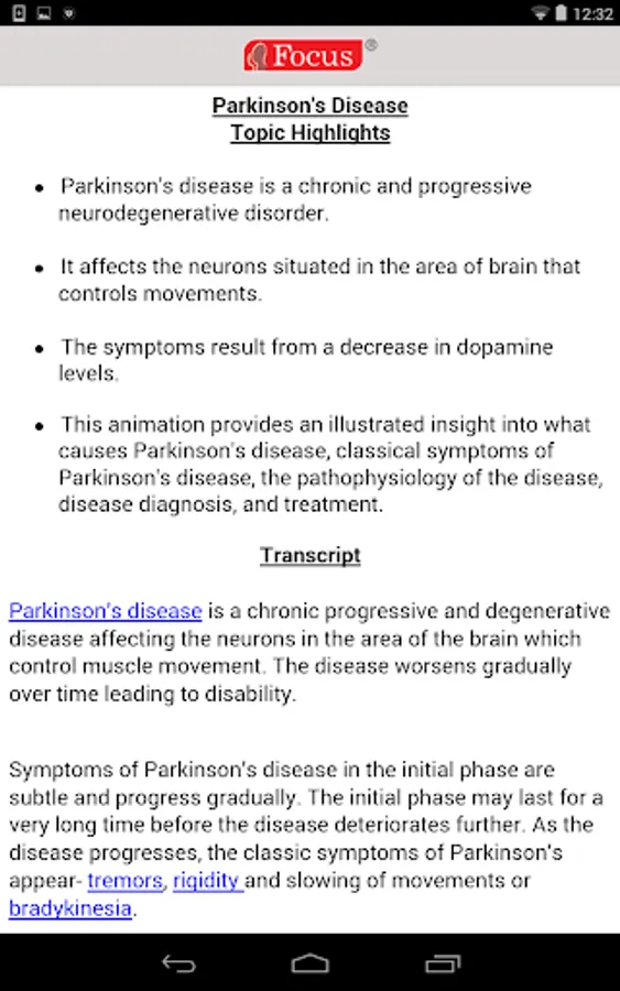 This presentation provides an insight into the causes, classical symptoms, pathophysiology, diagnosis and treatment for Parkinson’s disease.
