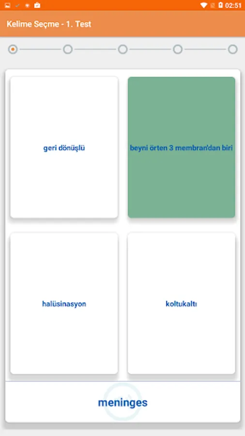 word memorization application settings, you can change the way you want the threshold value. For example, you can save only if you give the correct answer in 5 test words as the rote.