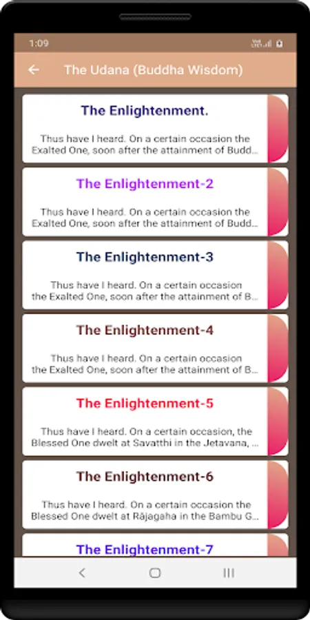 The Udana is a Buddhist scripture, part of the Pali Canon of Theravada Buddhism. It is included there in the Sutta Pitaka's Khuddaka Nikaya. The title might be translated as "inspired utterances". The book comprises 80 such utterances, most in verse, each preceded by a narrative giving the context in which the Buddha utters it.